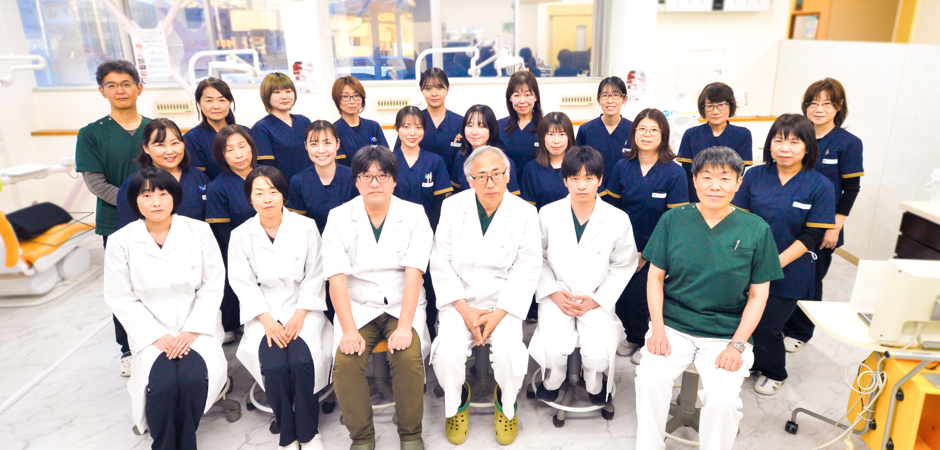 また複数の歯科医師が互いの専門分野から治療方針の検討をし、患者様に対して一口腔一単位での一貫した計画に基づいた治療を行うとともに、スタッフ全員が十分な科学的根拠に基づいた歯科医学を研鑽し、安心、安全な歯科医療を提供するよう心がけております。